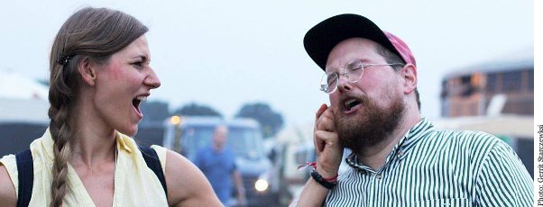 Von wegen Experimente: Dan Deacon ist ein wahrer König im Experimentieren. Wie ein sympathisch verrückter Professor wirkt er bei manch einem Soundexperiment, wenn er zum Beispiel alte Computerteile zusammen bastelt und die ungewöhnlichsten Geräusche damit erzeugt. Darum frage ich ihn, welche Maschine er erfinden würde, wenn er jegliche Maschinen erfinden könnte, die er wollte. "Ich würde eine Maschine erfinden, um zu einer Lösung zu kommen, für eine Sache, über die ich schon lange nachdenke: eine Maschine, die Menschen helfen würde, zu verstehen, wer sie selbst sind – und ihnen auch helfen würde, andere Menschen zu verstehen, eine Maschine, die Menschen helfen würde zu verstehen, dass jeder Mensch ein Mensch ist. Macht das Sinn?! Es wäre ein Human Harmonizer!", sagt Dan ganz euphorisch und lacht dabei. Wenn das mal nicht eine Marktlücke ist, so ein Human Harmonizer! Dabei wirken Dan Deacons Shows schon ein bisschen wie die Maschine, die erst noch erfunden werden muss. Fremde Menschen liegen sich in den Armen und haben viel Spaß dabei, sich mit den wildesten Dancemoves zum Deppen zu machen. "Ja, ich versuche das tatsächlich ein wenig in die Richtung zu bringen. Es ist großartig, wenn Leute nach der Show zu mir kommen und mir erzählen, dass es ihnen nun so viel besser geht und sie eine Menge Spaß hatten! Das ergibt dann eine Art Rückkopplung und macht mich wiederum glücklich! Ein Künstler, der mir so ein gutes Gefühl vermittelt hat, war Spalding Gray, ein Schauspieler und Monologführer. Ich wünschte, ich hätte ihn kennenlernen können! Seine Texte waren oft so dramatisch und er hat so viele Schicksalsschläge erlebt, und dennoch waren die Monologe oft so urkomisch, unglaublich! Alle paar Jahre mache ich auch mit ein paar Freunden Comedy-Touren. Ich meine, eigentlich besteht die Hälfte meiner Shows aus Comedy (lacht). Obwohl es in Europa nicht ganz so einfach ist, durch die Sprachbarriere."